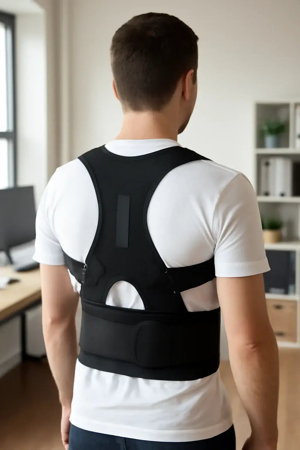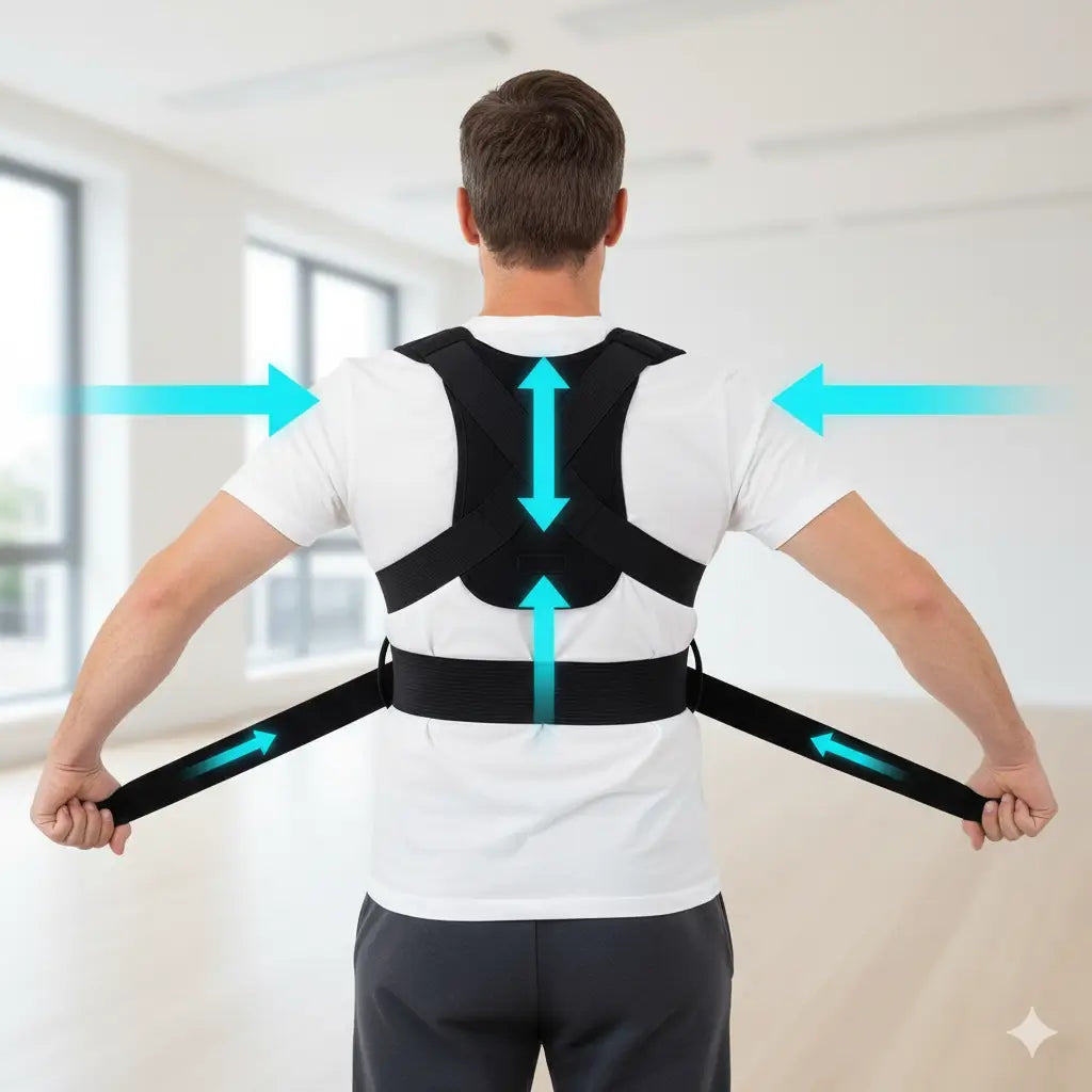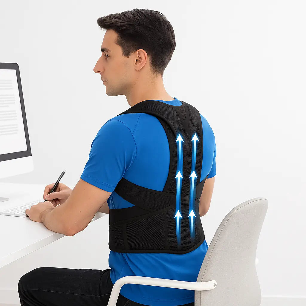 Ele foi desenvolvido para oferecer apoio leve na região dos ombros e das costas, ajudando a manter uma postura mais organizada durante o dia.