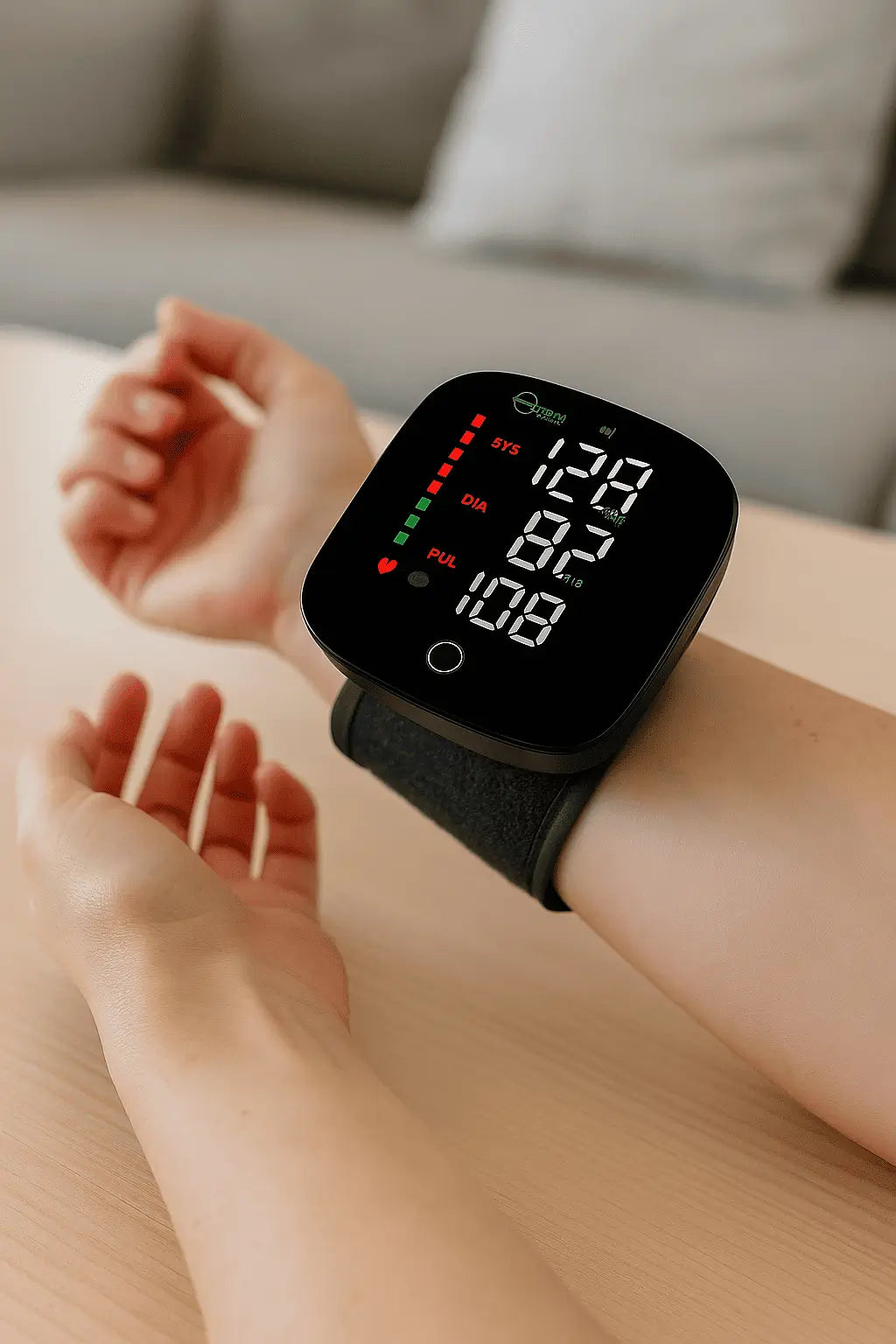 1️⃣ Coloque o aparelho no pulso