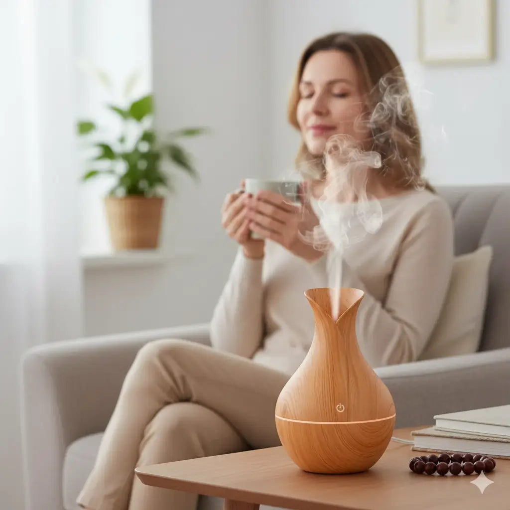 Transforme o clima da sua casa em um refúgio de bem-estar com o Umidificador Ultrassônico de Aromas USB em Madeira.